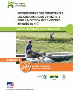 Ces modules, aujourd'hui validés, font l'objet de la présente publication. Ils sont destinés à être utilisés par tout formateur du secteur public ou privé en charge d'appuyer des organisations d'irrigants à mieux gérer leur système irrigué, dans le cadre de la politique de l'Etat haïtien de transfert responsable de leur gestion à des organisations d'irrigants légitimes et compétentes.